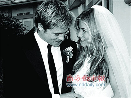 2000年7月29日,皮特和前妻珍妮佛·安妮斯頓的婚禮卻是相當壯觀。這場在加州馬里布海灘舉行的婚禮,共耗資百萬美元,宴請兩百名賓客,成為當年的頭號婚禮。這場婚禮相當出彩,花費了7.5萬美元用于購置鮮花,同時還用了2萬美元買了數(shù)量龐大的煙花。許多好萊塢巨星蒞臨現(xiàn)場。