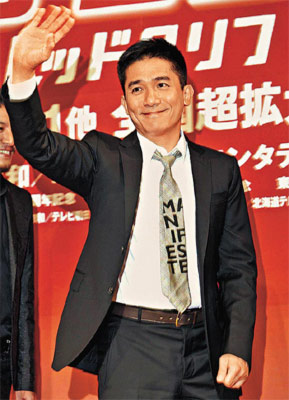 中新網(wǎng)8月7日電 上月21日與女友劉嘉玲在不丹完婚的梁朝偉(偉仔),昨日在東京六本木正式復工,與導演吳宇森、金城武和林志玲等在日本宣傳電影《赤壁》。偉仔獲臺下近500名記者鼓掌恭賀新婚,電影也正式宣布成為10月18日舉行的第21屆東京國際電影節(jié)目開幕電影。