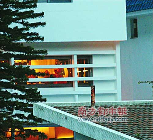 偉仔與嘉玲8月9日在家中舉行新婚派對(duì),嘉玲將頭發(fā)盤(pán)起,穿上桃紅色大露背低胸晚裝倍感迷人。當(dāng)日看到很多賓客盛裝赴會(huì),據(jù)悉有張學(xué)友夫婦、劉德華(華仔)及其他圈內(nèi)外好友。華仔8日晚才結(jié)束北京奧運(yùn)會(huì)開(kāi)幕式的表演,隨即趕回港出席派對(duì)。8月9日傍晚時(shí)分,已見(jiàn)身穿桃紅大露背晚裝的嘉玲在家中招呼賓客,每個(gè)人手上都拿著紅酒把酒言歡,不時(shí)在屋內(nèi)游走,大家都很享受這種自由派對(duì)的無(wú)拘無(wú)束。只是后來(lái)偉仔發(fā)現(xiàn)記者遠(yuǎn)距離拍攝屋內(nèi)情況,就走到窗前將窗簾拉上,但無(wú)礙他們的興致。他們一直在狂歡,以致守在花園門(mén)外的記者也不時(shí)聽(tīng)到他們傳來(lái)的笑聲。