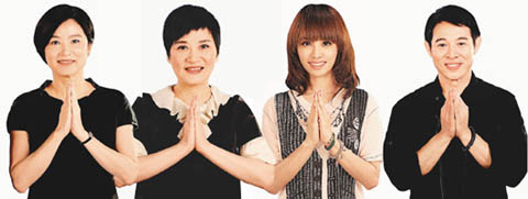 林青霞(左起)、張小燕、蔡依林、李連杰
