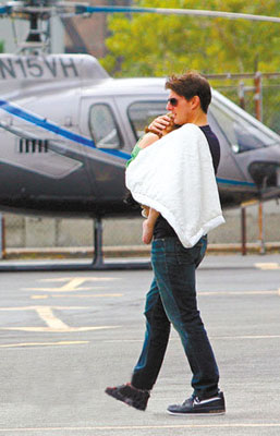 阿湯哥近日帶愛女蘇瑞乘坐直升飛機(jī)出行,他效仿麥當(dāng)娜的行為太不環(huán)保,卻絲毫不怕遭受炮轟,就連女兒蘇瑞也難忍機(jī)場噪音,堵耳以示抗議。