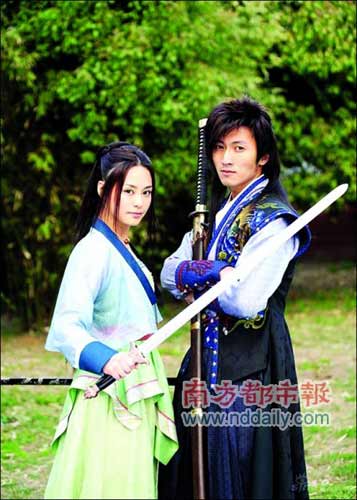 阿嬌和謝霆鋒在《浣花洗劍錄》中飾演一對(duì)情侶。