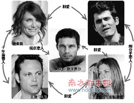 卡梅隆·迪亞茲和珍妮佛·安妮斯頓雖不是姐妹淘,但卻有驚人的相似點。兩人不僅都擁有金發(fā)碧眼,而且連對男友的喜好都相當相似。兩人都和約翰·梅耶(JohnMayer)、保羅·斯庫弗爾、文斯·沃恩(VinceVaughn)等人譜出一段戀情。(記者 張麟)