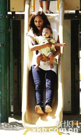 哈里·貝瑞陪女兒玩滑梯享天倫之樂(lè)(圖)