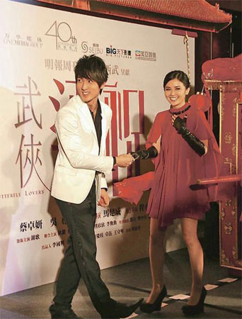 中新網(wǎng)10月7日電 馬楚成新片《劍蝶》前晚在香港舉行首映禮,主演阿Sa身穿鮮紅色連身裙,儼如新娘子般坐花轎出場,由手持長劍的吳尊“踢轎門”,引得現(xiàn)場粉絲尖叫連連。吳尊坦言被阿Sa的“新娘”裝迷倒,大贊雍容華貴,女人味十足。