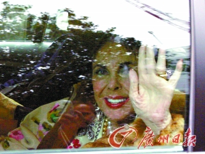坐上車(chē)后的泰勒隔著玻璃窗向攝影師招手,她珠光寶氣,依舊美艷迷人,但那已經(jīng)皺紋橫生的手卻毫不留情地提醒著人們這位一代美女已經(jīng)76歲的事實(shí)。
