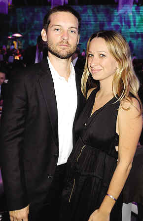 33歲的托比·馬奎爾和31歲的珠寶設計師妻子于2003年相識,兩人在2007年9月在夏威夷結婚,已經有一個2歲的女兒Ru-bySweetheart。珍·梅耶談起自己的婚姻生活,一臉幸福感地說:"太完美了,一切都很完美!"