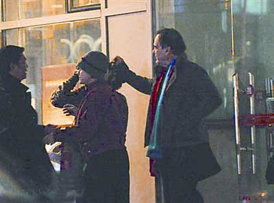 圖為范冰冰身穿豹紋外套,奧立弗·斯通扯范冰冰帽子。