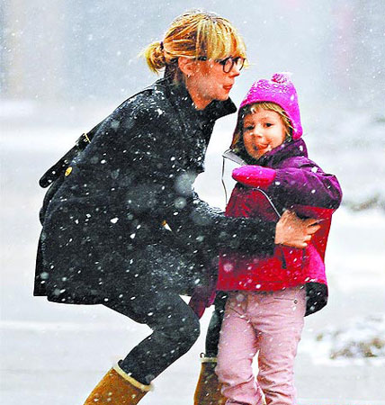 中新網(wǎng)12月21日電 已故男星希斯·萊杰(Heath Ledger)的女兒瑪?shù)龠_,和母親米歇爾·威廉姆斯相依為命。年僅3歲的她日前和母親上沙龍美甲,回家路上遇到大風雪,瑪?shù)龠_很興奮,在雪地上跑給母親追。