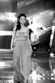 這對混跡影視圈多年的資深人士,對于T臺(tái)這個(gè)陌生的環(huán)境卻很生疏,短短50米走得實(shí)在不容易。陳凱歌穿的是一身黑色西裝,配上絲絨領(lǐng)帶和白襯衫,一派儒雅氣質(zhì)?烧嬉私(jīng)地走一段50米的T臺(tái),陳導(dǎo)的心情卻緊張起來了,身材本就“不模特”的他,不但一路走得東倒西歪,走到鏡頭前時(shí),也不知該如何擺pose,情急之下伸出右手,拿食指比劃了一圈,手執(zhí)導(dǎo)筒時(shí)的那股霸氣藏也藏不住。
