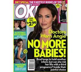 中新網(wǎng)12月31日電 剛出爐的“OK!”雜志,嚴重警告茱莉不能再懷孕,否則是跟自己的身體開玩笑!