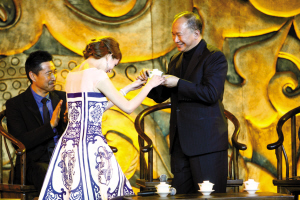 由于影片中出現(xiàn)眾多“雷人”的臺(tái)詞,外界對于《赤壁(下)》的期待,已經(jīng)從一部歷史片演變成一部賀歲喜劇片。不知道是不是受此影響,前晚剛在北京看過《赤壁(下)》的主創(chuàng)們,在昨日的首映發(fā)布會(huì)上也都充滿了“喜劇感”。穿一襲青花修身裙子亮相的林志玲特意在現(xiàn)場大秀茶藝,為各位赤壁將領(lǐng)沏上功夫茶,并親手送到導(dǎo)演與諸位男演員手里,讓一眾男士感覺十分受用。而成龍大哥也前來捧場,一上臺(tái)便給好友吳宇森一個(gè)熊抱,整個(gè)場面其樂融融。