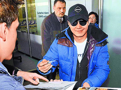 中新網(wǎng)2月10日電 臺(tái)灣媒體報(bào)道,黎明昨天抵達(dá)柏林,現(xiàn)場(chǎng)許多影迷接機(jī)、要簽名,他將與章子怡會(huì)合宣傳《梅蘭芳》。