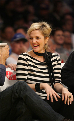 最近心情大好的德魯·巴里摩爾回到了洛杉磯,頭一件事情就是去觀看了洛杉磯湖人的NBA比賽,賽場的德魯·巴里摩爾不時開懷大笑。當(dāng)晚的裝扮更是讓人看著舒服的同時,星味十足,條紋寬肩上衣配黑色圍巾,黑色仔褲黑色高跟鞋,青春洋溢,實在好看。