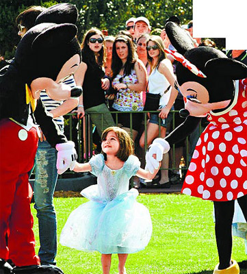 中新網(wǎng)2月18日電 湯姆·克魯斯(TomCruise)結(jié)束新片宣傳,隨即與家人共享天倫。他和愛(ài)妻凱蒂·赫爾姆斯上周末情人節(jié)帶女兒蘇瑞到佛羅里達(dá)州的迪斯尼樂(lè)園玩。蘇瑞扮成灰姑娘,阿湯哥拿著相機(jī)追著她拍,比狗仔還敬業(yè)。