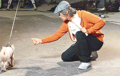 中新網(wǎng)3月3日電 日前,周星馳(星爺)秘密在香港為網(wǎng)絡游戲拍廣告片,平日星爺?shù)膹V告多有美女相伴,但這次只有小肥豬一只。而小肥豬拍攝期間又完全不受控制,要星爺施展渾身解數(shù)來逗它,大考星爺耐心。