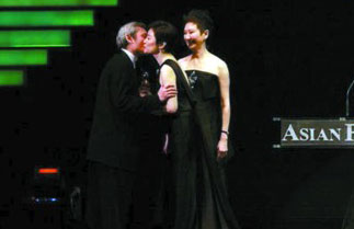 作為亞洲電影大獎重量級頒獎嘉賓,林青霞并未現(xiàn)身紅毯,在頒獎禮臨近尾聲時,林青霞一襲黑色長裙優(yōu)雅亮相,為徐克和施南生創(chuàng)立的“電影工作室”頒發(fā)“杰出貢獻(xiàn)大獎”。林青霞除了贊揚(yáng)徐克和施南生25年來對電影工作的貢獻(xiàn),還以“我的好朋友”稱呼徐克和施南生。雖然昔日的神仙眷侶徐克和施南生已經(jīng)離婚,但徐克在領(lǐng)獎時深情地親吻施南生面頰,在場觀眾無不動容。