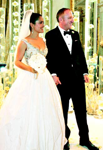 據(jù)臺灣《聯(lián)合報》報道,42歲的薩爾瑪·海耶克今年情人節(jié)與弗朗索瓦·昂利·皮諾特低調(diào)地在巴黎公證結(jié)婚,并在25日于水都威尼斯再度步上紅毯;槎Y于當(dāng)?shù)匾粭?8世紀的歌劇院進行,薩爾瑪與弗朗索瓦一歲半的女兒則當(dāng)花童。