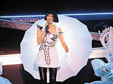 據(jù)香港媒體報道,鄭秀文前晚在上海可容納三萬觀眾的虹口體育場舉行一場演唱會,是夜全場爆滿,雖然鄭秀文以唱廣東歌為主,只唱了幾首普通話歌,但觀眾反應(yīng)仍很熱烈。不過在演唱雜錦快歌時,她的耳機(jī)突然失靈,在13分鐘的又唱又跳過程中,原來她完全聽不到自己的聲音,唱罷她在臺上說:“我很不開心,耳機(jī)壞掉,我完全聽不到自己在唱什么,所以我要重唱這部份!彼挥衷俪偬耆珱]有失準(zhǔn)。