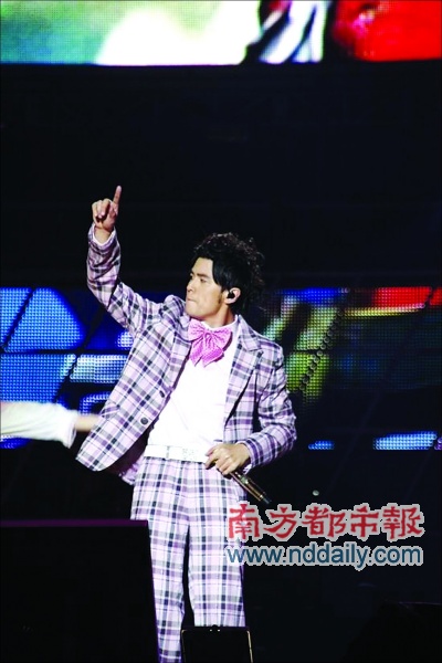 緊接著的演出是俏皮段落,演唱了《聽媽媽的話》、《我很忙》等歌,不過周董沒穿牛仔裝,而是一身花哨的西服。在唱《聽媽媽的話》時(shí),南拳媽媽上臺合唱,最好玩的段落是歌中提到的周潤發(fā)和張學(xué)友都現(xiàn)身大銀幕配唱,讓在場觀眾感到十分新鮮和驚喜。