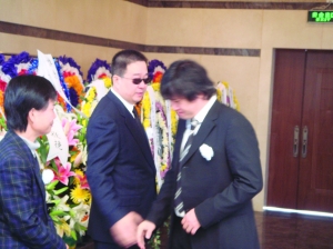 葉凡的丈夫徐希壯昨天一直表現(xiàn)得十分堅(jiān)強(qiáng),可喪妻之痛痛徹心扉,誰又能真正體會徐希壯此時(shí)的心情呢?葉凡與徐希壯是圈內(nèi)出了名的模范夫妻,徐希壯對于葉凡無微不至的照顧,一直讓葉凡生活在幸福之中。葉凡得癌癥之后,徐希壯為了不讓葉凡消沉,并沒有告訴葉凡實(shí)情,只是告訴她要好好接受治療。徐希壯一個人默默忍受了多少痛苦,我們不得而知,而他對于葉凡那種無私的愛卻讓我們無比敬重。為了掩飾自己的悲傷,徐希壯昨日特意戴上了墨鏡,一邊答謝前來參加追悼會的友人,一邊偷偷地抹去自己藏在黑色鏡片下的眼淚,在他摘下墨鏡的一瞬間,記者看見他那已經(jīng)哭得紅腫的雙眼。當(dāng)他手捧葉凡的遺像,默默地走到葉凡的遺體旁時(shí),他深深地嘆了口氣,說道:“一路走好!”而當(dāng)他目送葉凡的遺體送往火化館時(shí),一行眼淚順著墨鏡的邊緣慢慢地流了下來。