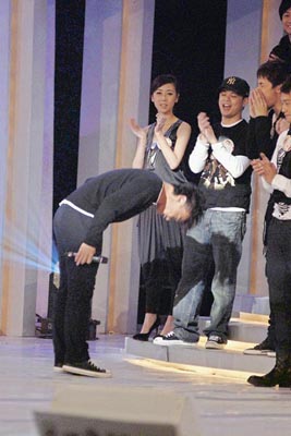 據(jù)香港明報(bào)報(bào)道,當(dāng)Eason獻(xiàn)唱《Crying in the party》時(shí),自覺表現(xiàn)欠佳,遂大叫“重錄”,雖然這番話清晰可見,但卻跟其他歌手的說(shuō)話重迭了,監(jiān)制未理會(huì)繼續(xù)錄像。Eason其后兩度與工作人員交涉要求重錄不果,氣急下臺(tái)到場(chǎng)外的空地“消氣”,工作人員趕忙暫停錄像,追出去了解情況。在場(chǎng)歌手都顯得愕然,千嬅相信只是技術(shù)問(wèn)題,Eason已很紳士了。