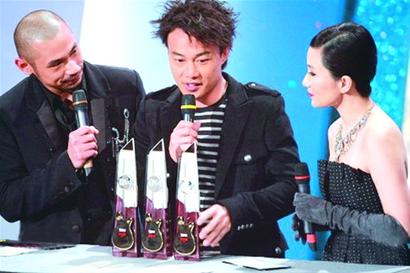 頒獎典禮開始不久,香港天王陳奕迅就憑借國語單曲《淘汰》連得最佳編曲、最佳監(jiān)制、金曲第3首三個獎項頒獎禮,掀起首個高潮;之后他又奪得最佳男歌手獎,他的《富士山下》奪得全球觀眾最受歡迎粵語歌曲獎,連奪5獎,成為當(dāng)晚最大贏家。
