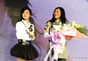 潘長(zhǎng)江的女兒潘陽(yáng)(左)發(fā)專輯,那英捧場(chǎng)。夏永 攝