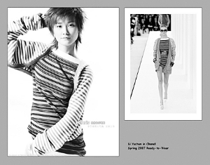 最近,“玉米”們很費心思地做了一系列圖片,主題是他們家春春穿著各大名牌的衣服和模特的對比圖。結(jié)果我們發(fā)現(xiàn),李宇春真的能把許多衣服穿出自己的感覺,并且不僅僅是中性。想象一下李宇春穿香奈兒套裝會是什么樣子?模特走秀時穿的這系列成衣都是香奈兒家典型的纖細優(yōu)雅風,而同樣的衣服穿在李宇春身上,則多了幾分青蔥少年的特質(zhì)?纯雌渌恼掌,我們可以發(fā)現(xiàn)除了像香奈兒和GUCCI等大牌成衣,最近幾年流行的Y-3和Comme des Gargons等潮牌也是她的最愛,除此之外還有稍微平價些的牌子,比如Diesel和Miss sixty,雖然玉米們的意思是為了證明李宇春穿得比模特好看,但是效果卻是絲毫沒有可比性,因為李宇春的造型師真的是用衣服在襯托明星,而不是讓衣服穿人。