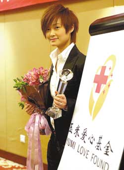 日前,中國(guó)紅基會(huì)召開(kāi)“玉米愛(ài)心基金”成立兩周年暨基金標(biāo)識(shí)征集揭曉發(fā)布會(huì)。李宇春親自為愛(ài)心基金標(biāo)識(shí)的設(shè)計(jì)者、來(lái)自上海同濟(jì)大學(xué)的研究生宋頌頒發(fā)了紀(jì)念牌。(記者方芳)