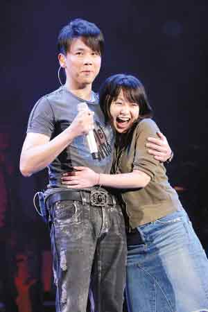 之后陶喆再請來一名身材比較豐滿的日本女歌迷上臺,伴他一起唱《流沙》,陶喆更公開大贊該歌迷很靚女,唱歌期間,陶喆不是拖著這位女歌迷,就是緊緊攬著她,最后更大方吻向?qū)Ψ降念~頭,這位女歌迷也幸福得錯把自己的名字說成“很高興”,而臺下歌迷更是尖叫連連。
