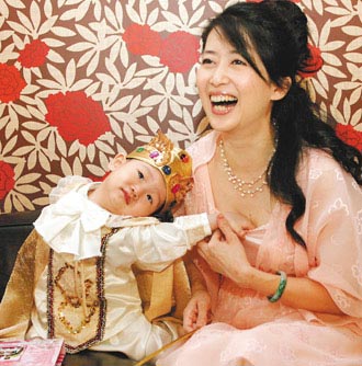 據(jù)臺(tái)灣聯(lián)合報(bào)報(bào)道,小寶弟穿上帥氣的王子裝,伸手要他最愛(ài)的公主媽媽抱抱,被醫(yī)師評(píng)為“長(zhǎng)得超快”的頭圍戴不住王冠,不怕閃光燈的他卻不愿配合笑,但媽媽一句“裝可愛(ài)”口令,他馬上擠眉弄眼假笑,另一只手還老不自覺(jué)地往媽媽胸口抓,急得這孟庭葦猛護(hù)胸:“小寶弟,你對(duì)媽媽非禮喔!