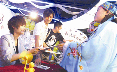下午2時(shí),李宇春準(zhǔn)時(shí)開始簽售,此時(shí)場外已經(jīng)被“玉米們”圍得水泄不通。李宇春在連續(xù)兩個(gè)多小時(shí)的簽售中始終保持微笑,并堅(jiān)持親手遞過簽名本,對每一位歌迷說“謝謝”。因?yàn)槔钣畲簩]嬛杏惺住缎悴藕,昨天?位“玉米”專門穿著古裝扮成“秀才”前來捧場,她們用折扇遮住自己的臉龐,集體一亮相便引得李宇春哈哈大笑。