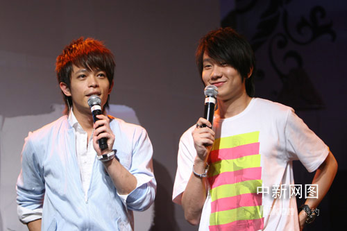 同門師兄林俊杰的亮相讓發(fā)布會(huì)現(xiàn)場(chǎng)掀起一陣熱潮,他和林宇中首次同臺(tái)合唱了兩人一起創(chuàng)作的歌曲《搶玫瑰》,讓現(xiàn)場(chǎng)歌迷大飽耳福。在演出中,兩人竟跳到臺(tái)下大派玫瑰花,引歌迷尖叫連連。這首歌其實(shí)是在講愛上“萬人迷”的“苦男”心理,林俊杰更趁機(jī)向師弟喊話,若愛上同一個(gè)人,“搞不好我會(huì)搶哦”。