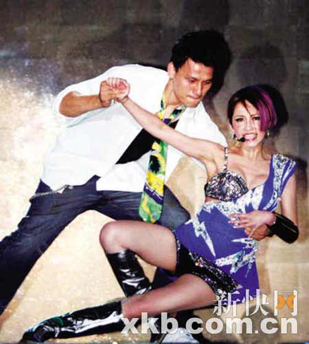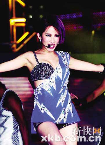 趁新專輯《3面夏娃》大賣,El-va9日晚在臺中舉辦表演秀,并以性感舞衣及14首金曲答謝粉絲,最矚目的是她身穿單肩閃電圖案上衣,秀出鑲鉆Bra-top及性感熱褲,配合鑲滿鉆石的眼鏡道具,加上她與籃球隊選手陳志忠大跳辣舞,掀起全晚高潮!不過Elva這個“半盲”造型彩排時,不慎差錯腳,幾乎從3米高臺墜下,幸好有驚無險。經(jīng)紀人抹一把汗之余,立即將保險額加碼至2000萬港元。