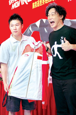 李小鵬和楊揚還特別帶來了親筆簽名的運動服為陳奕迅加油打氣。