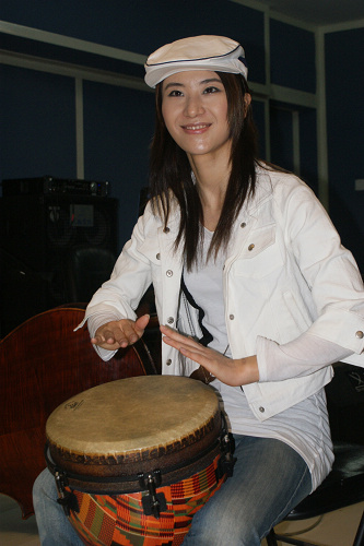 為了讓記者一飽耳福,尚雯婕還特別拿出了一只原木色花紋的非洲手鼓,牛皮鼓面用鐵圈緊緊箍著。緊接著,尚雯婕意想不到的將雙手輕松隨意地落在鼓面上,奏出了一段讓人不禁跟著搖擺身體的節(jié)奏,頓時一股原始自然風(fēng)在耳畔開始回旋。尚雯婕表示,為了完美的將演唱會呈現(xiàn),自己除了白天與樂隊磨合,晚上對歌曲重新編曲,每天還要練舞長達4小時之外,從舞臺設(shè)計到演出的概念尚雯婕都有親力親為參與到其中。這段非洲鼓就是她和導(dǎo)演經(jīng)過商榷切磋出來的“重磅炸彈”。除了一系列的緊張排練,她還要忙里偷閑來學(xué)習(xí)這段非洲手鼓。剛開始的時候完全摸不著頭腦,現(xiàn)在的她已經(jīng)可以用很多種手法的組合打出一些復(fù)雜的旋律來。學(xué)習(xí)非洲鼓最重要的是必須要將節(jié)奏韻律很好的掌握還有反復(fù)用心的練習(xí)。手鼓的演奏在于接觸鼓面的指法而不是用多大的力氣敲擊鼓面,所以完全不用擔(dān)心太認(rèn)真的練習(xí)會把自己的雙手敲腫。當(dāng)記者問到老師是誰的時候,尚雯婕賣了一個小關(guān)子。她說:“是行家!絕對的行家!演唱會上我們就一見分曉吧!”