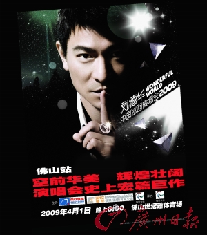 他成就了一種精神——永不言敗,他鑄就了一個榜樣——奮斗不息,他就是華人演藝圈的“勞!薄獎⒌氯A。在2009本命年,劉德華將把 “Wonderful World(奇幻世界)”巡回演唱會帶到中國內(nèi)地,馬不停蹄地與各地樂迷分享他出道以來最豪華的演唱會。而值得廣東樂迷開心的是,劉天王將于3月20日和4月1日分別登陸廣州奧林匹克中心和佛山世紀(jì)蓮體育場,兩場演唱會都可容納3萬多樂迷。