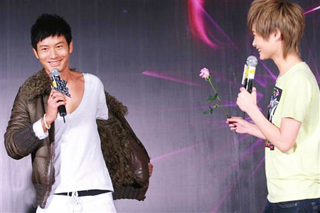 “李宇春2009WHYME廣州演唱會(huì)”昨日在京舉行了發(fā)布會(huì),臺(tái)灣搖滾天王阿信和內(nèi)地明星黃曉明到場(chǎng)助陣。昨日在發(fā)布會(huì)上亮相時(shí),她的造型讓在場(chǎng)觀眾大吃一驚,白色七分袖襯衫配一件天藍(lán)色大雙排扣開領(lǐng)套頭毛衫,黑色緊身褲再加上一雙加入金屬元素的皮鞋,隱隱透出些許女人味。隨后春春T恤裝再現(xiàn)帥氣扮相,接下來黃曉明的出現(xiàn)連春春都沒有預(yù)料到,他一上臺(tái)就為春春獻(xiàn)上一朵玫瑰花和一瓶1984年的法國紅酒,剛好與春春的出生年份相同,春春連呼“有心了有心了”。 聞聞