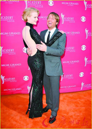 當天,頒獎禮上星光熠熠,嘉賓詹妮弗·洛芙·休伊特一襲白色長裙登臺,模特瑪麗莎同樣也選擇了白裙。美國青春女歌手麥莉·塞勒斯、奧斯卡影帝吉米·?怂、男星馬修·麥康納等都是當天的頒獎嘉賓。不過,在當天的紅地毯上的亮點還是妮可·基德曼夫婦。妮可的老公、澳大利亞著名鄉(xiāng)村音樂歌手凱斯·厄本是當天的表演嘉賓,而妮可一身大露背裝更是搶走了頒獎禮的不少風頭。(星 星)