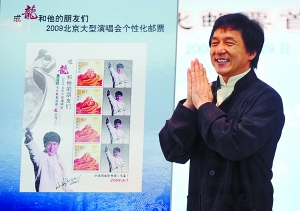 據(jù)悉,成龍個性化郵票和紀念郵冊現(xiàn)已在北京各主要郵政支局售賣,去鳥巢觀看“成龍和他的朋友們”演唱會的觀眾也可在鳥巢的郵局購買郵票和郵冊。