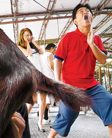 中新網(wǎng)10月25日電 臺灣媒體報(bào)道,吳宗憲(右)跟女星Linda日前在臺灣南部牧場錄臺視《綜藝大勝戰(zhàn)》,被制作單位要求現(xiàn)場喝羊乳,看到熱騰騰的羊乳直接“射”過來,Linda嚇到花容失色,反而是吳宗憲自得其樂,不僅歪嘴接奶,還喝到溢奶。