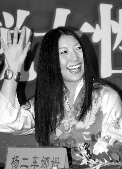 去年在娛樂圈鬧騰了大半年、被評為2007年娛樂紅人的楊二車娜姆在新年伊始首度高調出場,帶著她的新書與北京的媒體見面。每個女人都是一朵花,每個人都有一朵心中的花!按骰ā背闪藯疃囊粋符號。一身傳統(tǒng)的藏式長袍,一頭烏黑的長發(fā)披肩,但是卻少了發(fā)間的那朵標志性的大紅花,楊二的這一全新的裝扮讓在座記者都議論紛紛。
