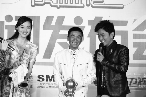 吳宗憲的嘴上涂了層淡淡的唇蜜,這讓他的兩片厚嘴唇上下翻飛起來顯得有些滑稽。站在他身邊的王寶強(qiáng)和韓雪毫無招架之力,從一開始就掉入了吳宗憲的“圈套”——這位老兄不管三七二十一,就給那兩個(gè)怎么看都不搭的人當(dāng)起了紅娘。昨天的“無線音樂年度盛典”發(fā)布會(huì),很快就成了吳宗憲的“耍寶會(huì)”。
