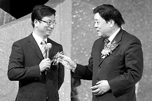 當(dāng)晚獲獎(jiǎng)的播音主持人當(dāng)中,僅崔永元因在云南制作節(jié)目沒有到場(chǎng)。主持人通過電話連線了遠(yuǎn)在云南的崔永元。他笑稱,“因?yàn)樵趫?chǎng)的都是我的老師,只有白巖松是我的徒弟,所以他替我領(lǐng)獎(jiǎng)吧!倍宜“欽點(diǎn)”趙忠祥為他頒獎(jiǎng)。(記者解宏乾)