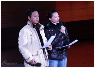 今年春晚主持人的出場(chǎng)方式與眾不同,記者在現(xiàn)場(chǎng)看到,開場(chǎng)歌舞《飛向春天》跳到一半時(shí),朱軍、董卿、李詠、周濤、張澤群、劉芳菲6位主持人“從天而降”,用特殊的方式給全國(guó)觀眾拜年。如果說(shuō)往年“4+2”的主持人模式讓觀眾有些“審美疲勞”,那么白巖松、畢福劍的加入無(wú)疑增添了新看點(diǎn)。一貫嬉皮笑臉的畢福劍要介紹《星光大道》的年度總冠軍、盲人小伙楊光出場(chǎng)。平日里喜好板臉說(shuō)事的白巖松要采訪王寶強(qiáng),引出《農(nóng)民工之歌》。不過(guò),將在今年春晚上一人表演兩個(gè)節(jié)目的王寶強(qiáng)并沒有參加聯(lián)排。