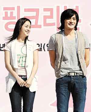 日前被韓國市民選為2008上半年最受歡迎男女藝人的張東健和金泰熙,前日以宣傳大使的身份出席在釜山舉行的“粉紅絲帶愛之馬拉松”活動(dòng),除為參賽者打氣,他倆還自掏腰包捐出善款給預(yù)防乳癌基金。張東健和金泰熙早前因親昵拍攝化妝品廣告而傳出緋聞,前日他倆卻顯得頗為避忌,合照時(shí)更相隔幾尺,莫非金泰熙是怕場(chǎng)內(nèi)大批女選手吃醋?