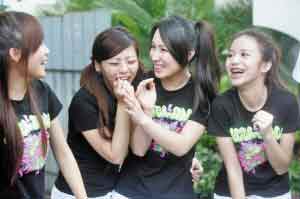 5月5日,黑澀會美眉與黑人來到廣州體院拍攝外景,參觀大學(xué)里四個各具特色的社團(tuán)——雙截棍、舞獅、武術(shù)及戲曲團(tuán)。俗話說,三個女人一臺戲,這8妞妞湊在一起,雖然馬不停蹄地趕通告,同樣不影響她們旺盛的精力及古靈精怪的個性,全程不斷大笑、嘰嘰喳喳,閑聊一刻不停歇,有時還需要工作人員提醒才乖乖地收口,談?wù)摰脑掝}更是包羅萬象,從蚊子咬的包到路人很瘦的腿,都能引起她們強烈驚嘆。