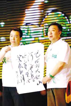 地震災(zāi)區(qū)重建需要全社會(huì)的力量參與,日前,天津衛(wèi)視《笑傲江湖》節(jié)目組錄制了《點(diǎn)亮希望賑災(zāi)義演》特別節(jié)目,發(fā)動(dòng)相聲界人士,共籌得善款103萬元,用于修建“蔚川小學(xué)”,這是目前為止第一場相聲界賑災(zāi)義演活動(dòng)。據(jù)悉,該節(jié)目將于6月1日晚播出。