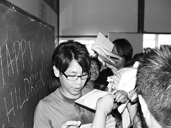上海SMG和四川成都傳媒集團推出的《加油,孩子!——六一兒童節(jié)特別行動》,今天在東方衛(wèi)視和成都電視臺直播。昨天,趁排練空隙,臺灣歌星陶喆和內(nèi)地影視明星鄧超分別來到成都市青羊區(qū)愛心學校和武侯區(qū)愛心家園,給來自地震災(zāi)區(qū)的孩子們上課……